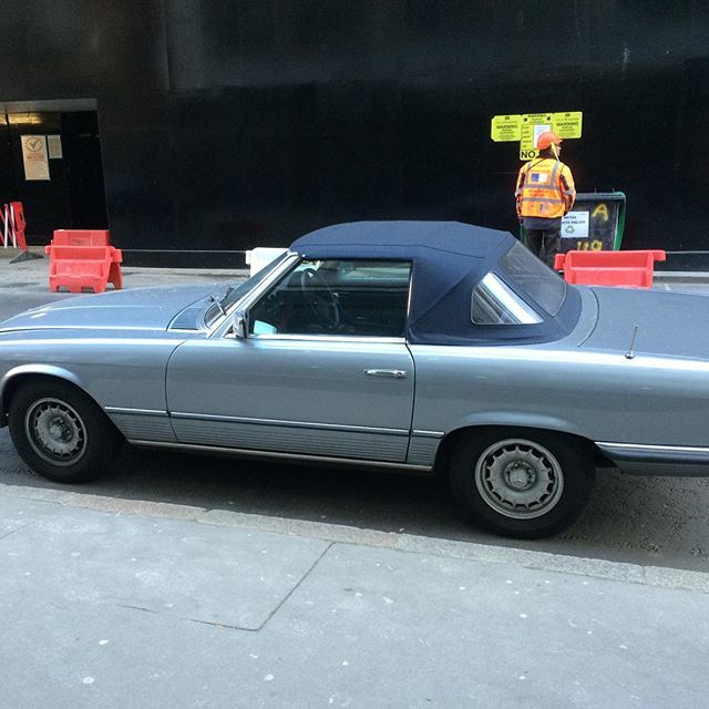 Mercedes SL in light blue. Not keen on the body work colour but the dark hood is great. #convertible